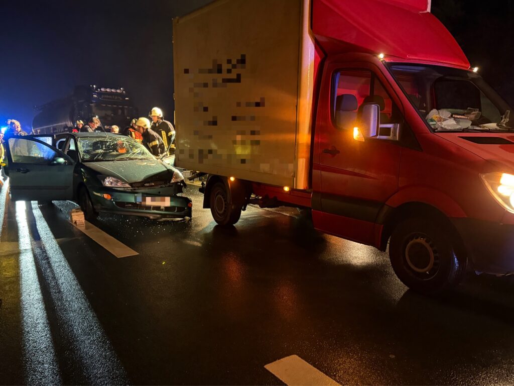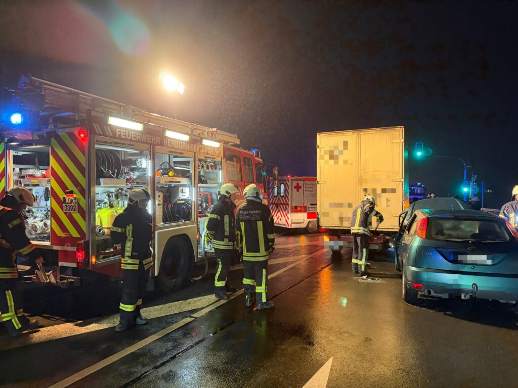 Vor Ort stellte sich heraus, dass es im Bereich einer Ampelanlage zu einem Verkehrsunfall gekommen war, bei dem ein PKW mit einem LKW kollidiert war. Eine Person befand sich im PKW und war im Fahrzeug eingeschlossen.